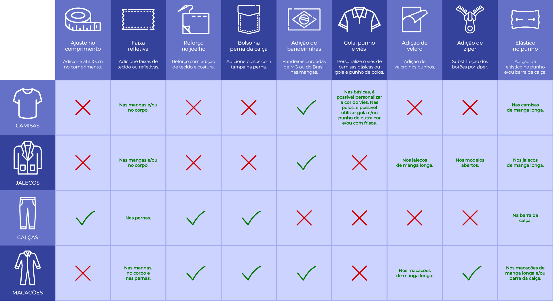 Tabela de Personalizações